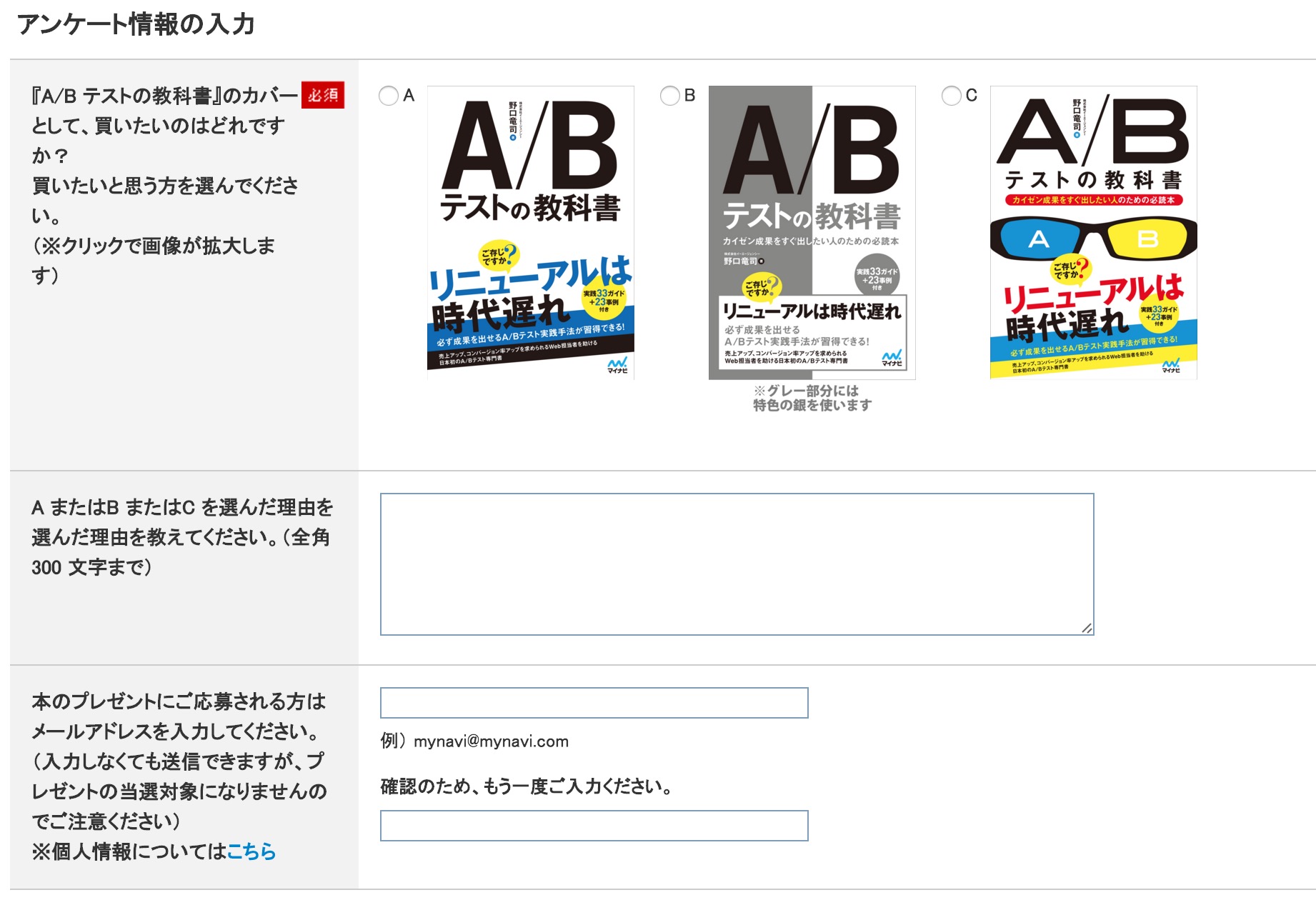 12月に発行予定の弊社野口が執筆している『A/Bテストの教科書』のカバーについて、A/Bテストを行なっています。
