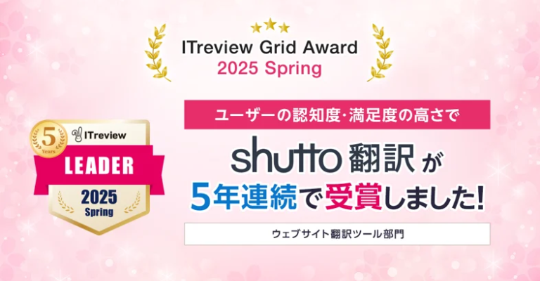 ITreview Grid Award 2025 Springにて、ウェブサイト翻訳ツール部門で「Leader」を5年連続で受賞しました!