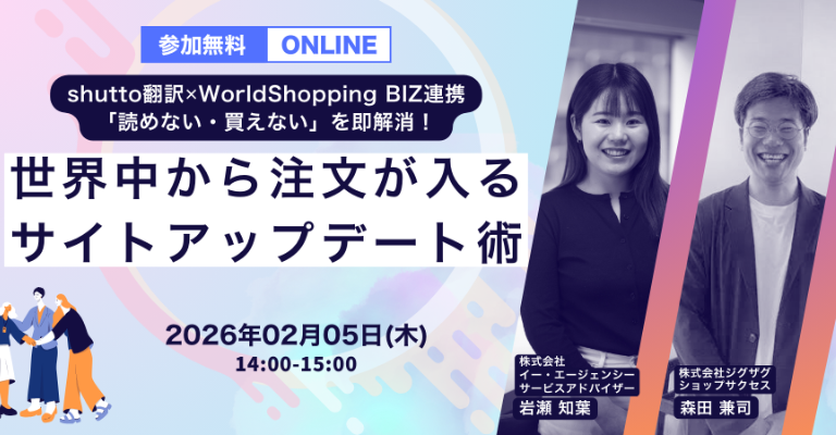 2026年2月5日(木)開催 shutto翻訳✕WorldShopping BIZ連携 「読めない・買えない」を即解消!世界中から注文が入るサイトアップデート術