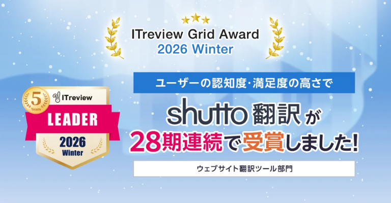 ITreview Grid Award 2026 Winterにて、ウェブサイト翻訳ツールカテゴリーで「Leader」を28期連続で受賞しました!