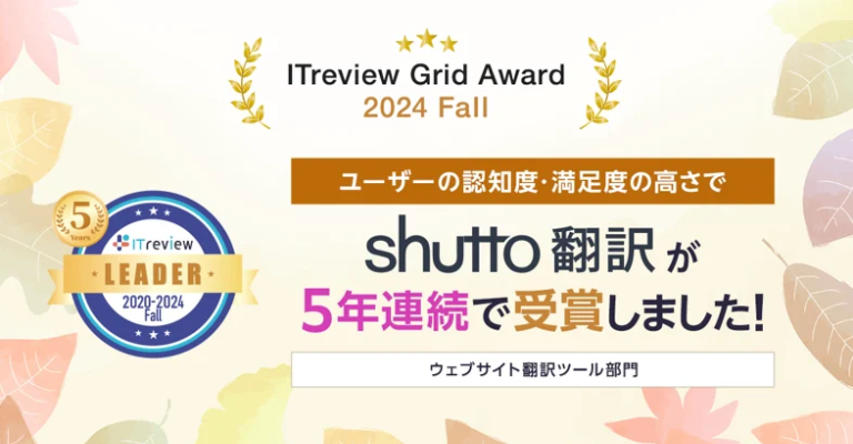 ITreview Grid Award 2024 Fallにて、ウェブサイト翻訳ツール部門で「Leader」を5年連続で受賞しました!