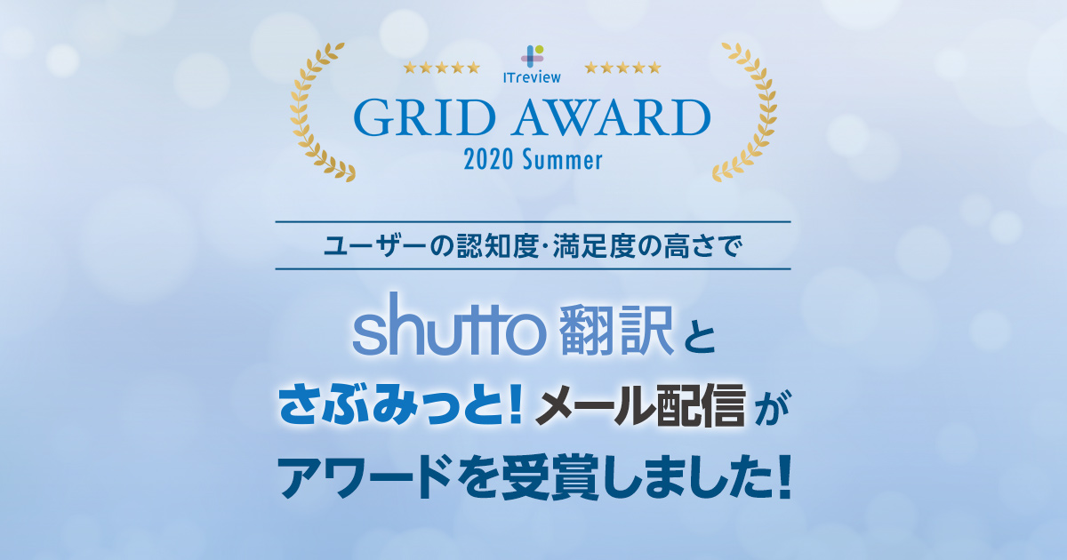 「shutto翻訳」「さぶみっと!メール配信」がアワード受賞!~ITreview Grid Award 2020 Summer