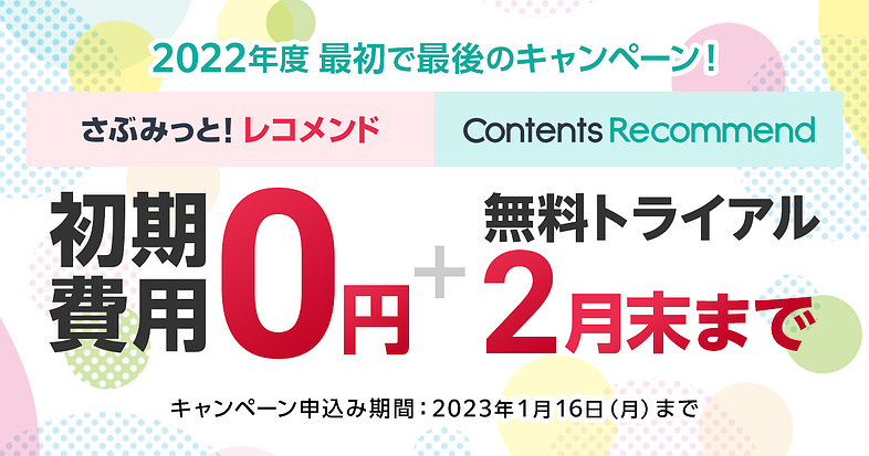 「さぶみっと!レコメンド」「Contents Recommend」初期費用無料(2月末までの無料トライアル付き)キャンペーンを実施!