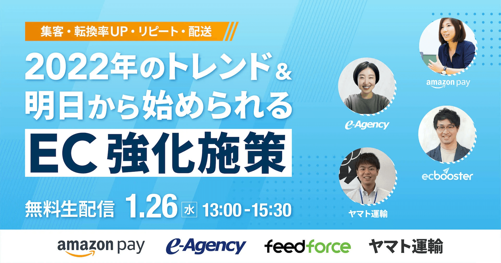 【1/26(水)無料生配信】《EC事業者向け》アマゾンジャパン / ヤマト運輸 / フィードフォースと最新EC強化ウェビナー開催