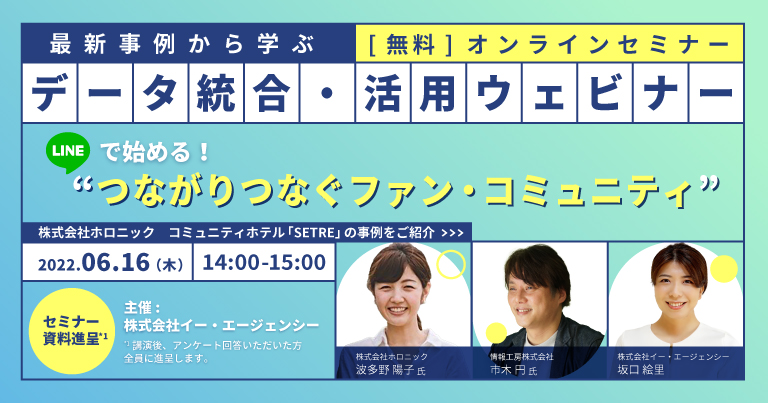 【無料ウェビナー 6月16日開催】最新事例から学ぶ「データ統合・活用ウェビナー」 LINEではじめる!“つながりつなぐファン・コミュニティ”