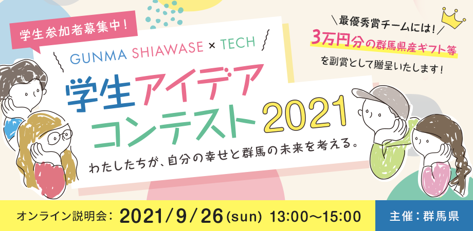 群馬県主催「GUNMA SHIAWASE × TECH 学生アイデアコンテスト2021」の企画・運営を株式会社イー・エージェンシーがプロデュースして開催します