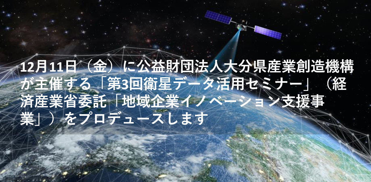 イー・エージェンシーのオンラインワークショップのノウハウを活用し、12月11日(金)に公益財団法人大分県産業創造機構が主催する「第3回衛星データ活用セミナー」(経済産業省委託「地域企業イノベーション支援事業」)をプロデュースします。