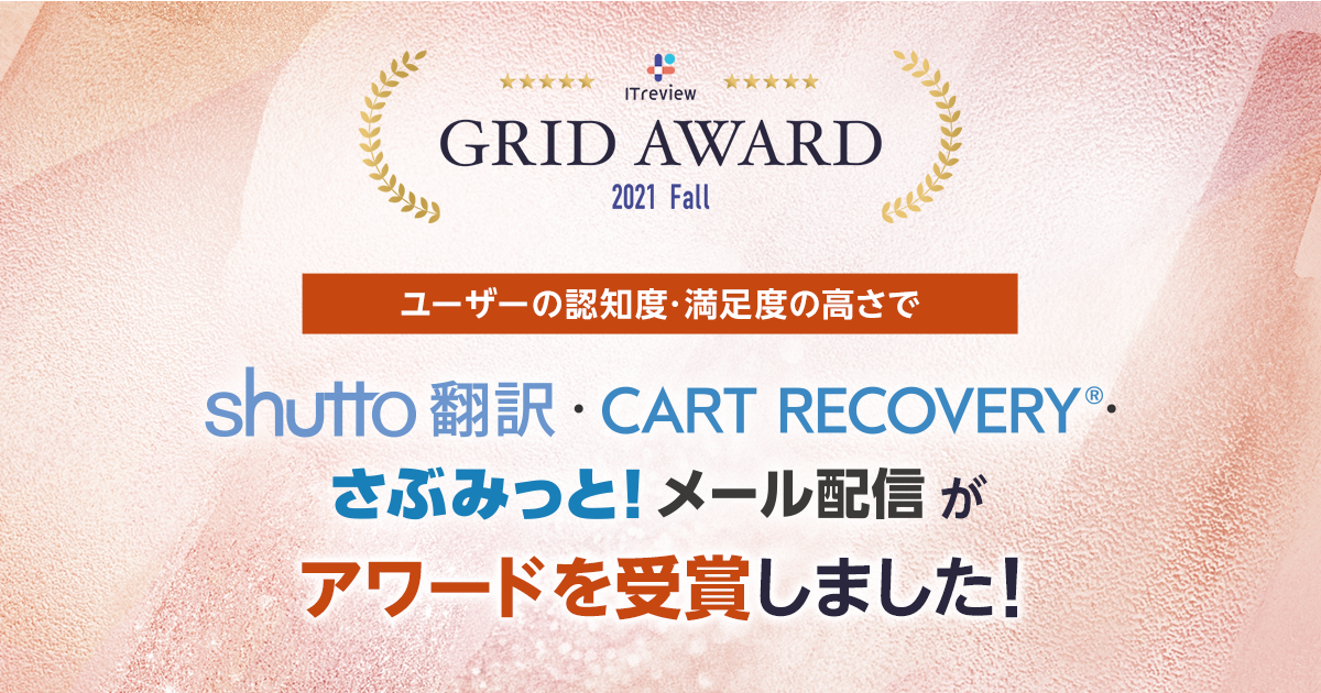 「shutto翻訳」「CART RECOVERY」「さぶみっと!メール配信」、ユーザーの満足度と認知度の高さでアワードを受賞!~「ITreview Grid Award 2021 Fall」