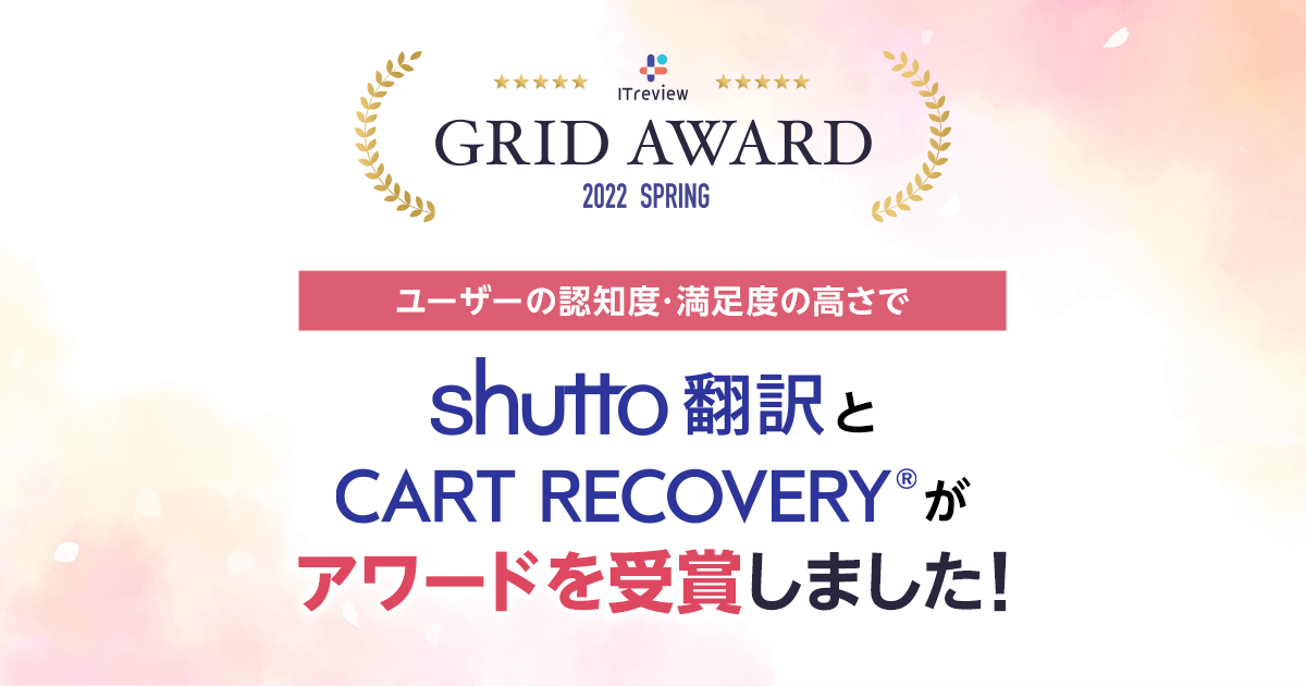 「shutto翻訳」「CART RECOVERY」「さぶみっと!メール配信」、ユーザーの満足度と認知度の高さでアワードを受賞!~「ITreview Grid Award 2022 Spring」