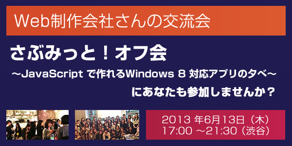 6/13(木) さぶみっと!オフ会 ~JavaScript で作れるWindows 8 対応アプリの夕べ~ を開催します!