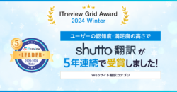shutto翻訳、Webサイト翻訳カテゴリーで「Leader」を5年連続受賞!(ITreview Grid Award 2024 Winter)
