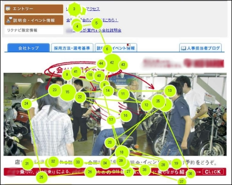 新卒サイトならではの画像に惹かれるケースもありました。図2は、学生C(男性)の視線の動きです。