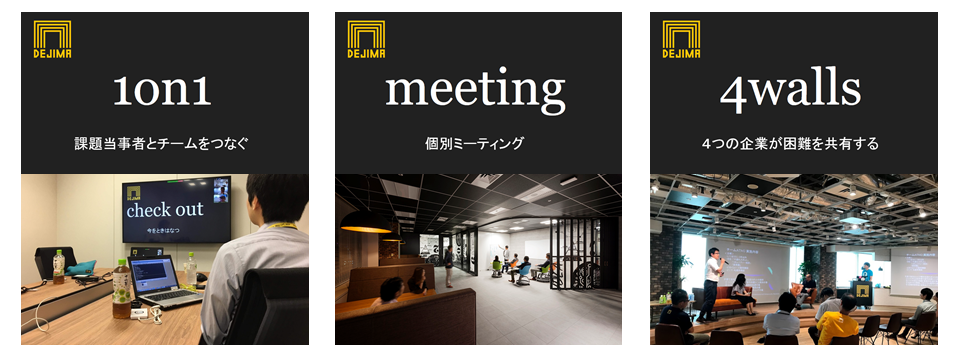 今回のデジマ式ワールドカフェ(4teams)のゴール地点から3つのフォローアップ(1on1、meeting、4walls)も用意しておりますので、是非次に繋げていきましょう!