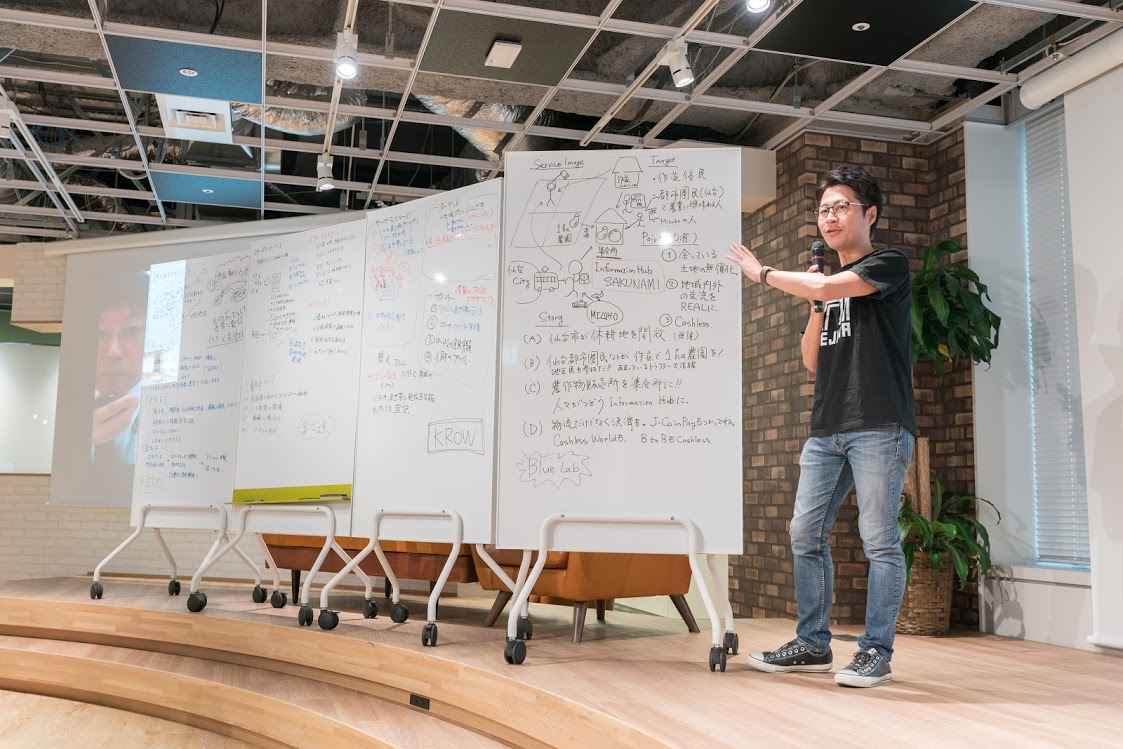 ホワイトボード上に描かれたプラン。いよいよ、仙台市さまへの発表です。