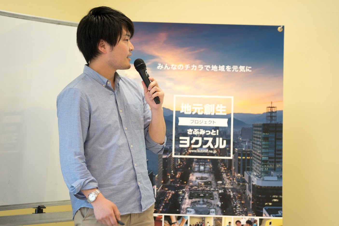 「さぶみっと!ヨクスル」は、自分たちの地域を自分たちの手で盛り上げていきたいというプレゼンテーマに対して、「宮城、そして東北が大好き!」という思いを持った参加者のみなさまで実現に向けたアイデアを考えていく、アイデアソンイベントです。