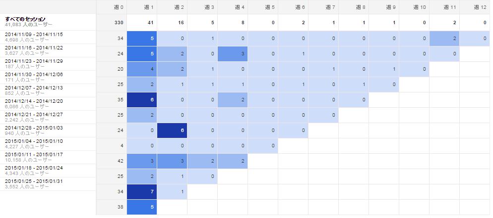 Googleアナリティクスのコホート分析を使って分析してみました。