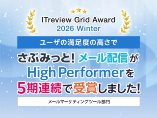 ITreview Grid Award 2026 Winterにてメールマーケティングツールカテゴリーで「High Performer」を5期連続受賞しました!