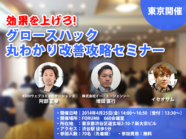 効果を上げろ!グロースハック丸わかり改善攻略セミナー(東京・渋谷 70名無料)